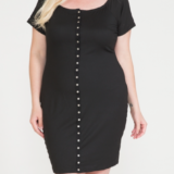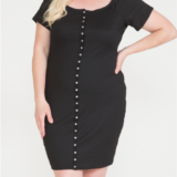Off shoulder button body-con mini dress stretch ribbed material with functioning top 8 buttons