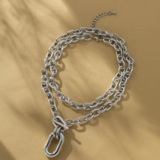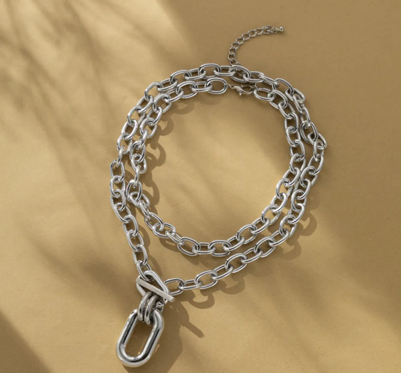 Elevate your style with this Multi-Layer Geometric Metal Buckle Necklace, a bold and trendy statement piece perfect for fashion-forward individuals. Featuring a double-layered chunky chain design with an oversized geometric buckle, this necklace exudes confidence and sophistication. Available in gold and silver, it effortlessly complements casual and dressy outfits, making it a must-have accessory.