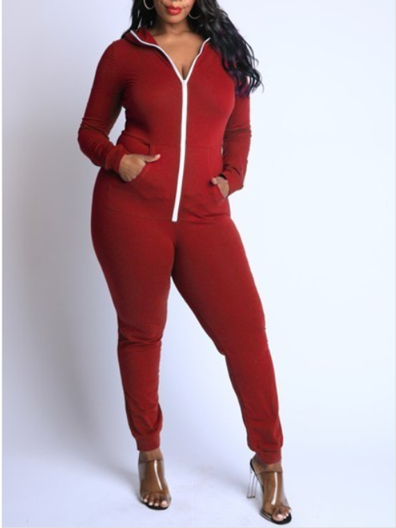 Zipper Front Hooded Jumpsuit. Comfortable, stretchy and cozy.